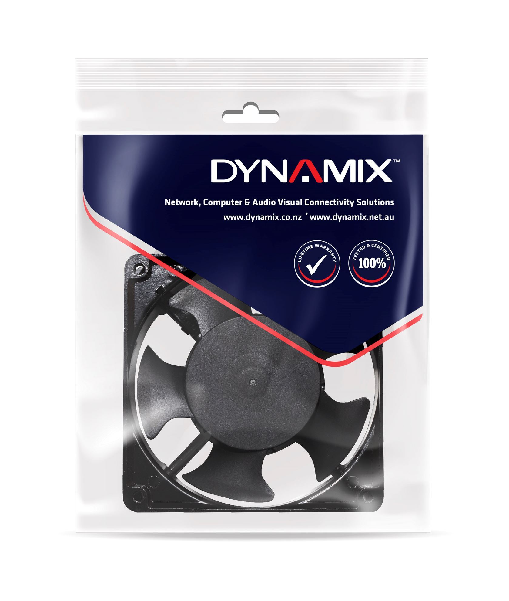 DYNAMIX Additional 230V Fan for Cabinets & Racks. Air Flow 50~ 100CBM/H. Dimensions: 120mm x 120mm x 40mm. Mounting Dimensions: 105mm x 105mm. 95CFM. 0.12A. Ball Bearing. 2650RPM. 55dB
