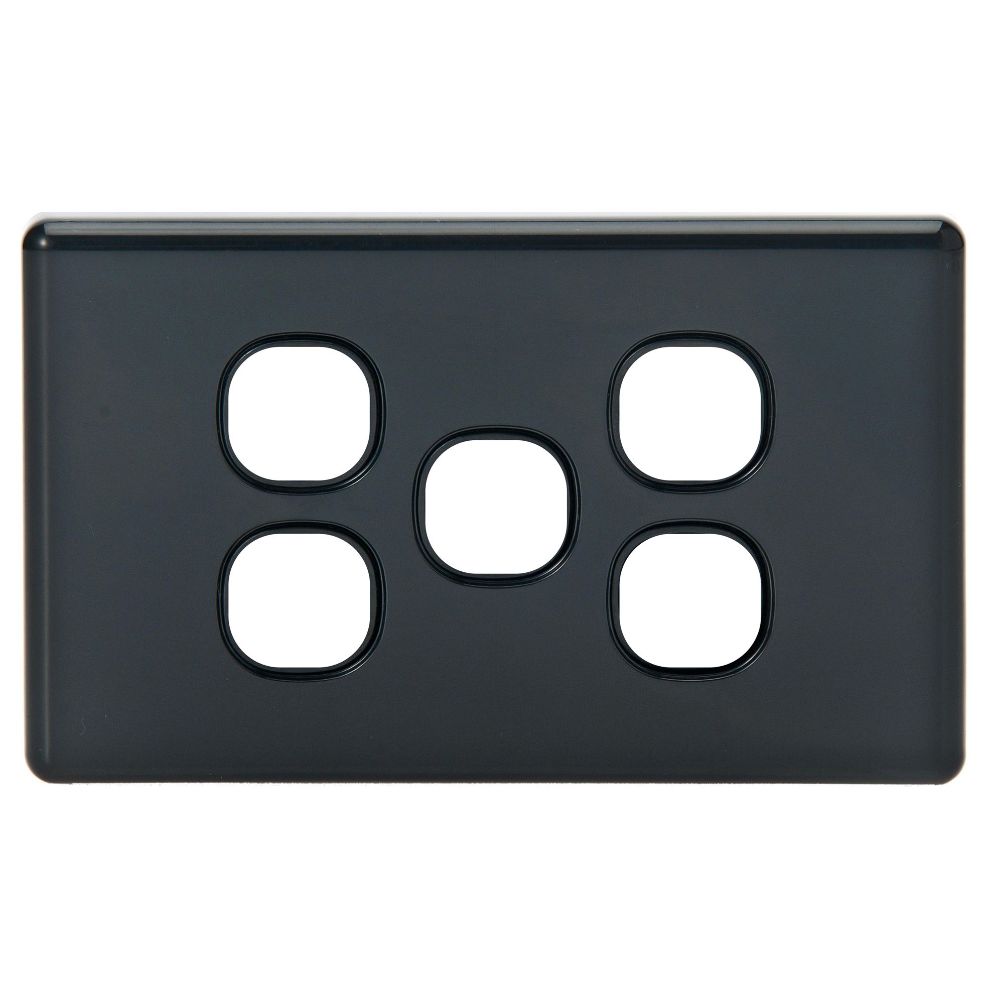 Black Switch Plate Only 5 Gang Accepts Tradesave Mechanisms Flame Resistant Polycarbonate