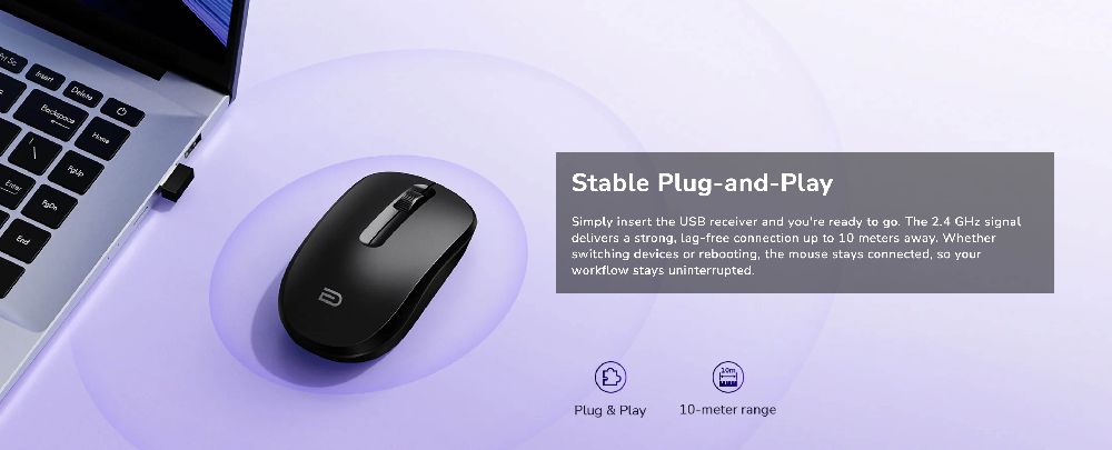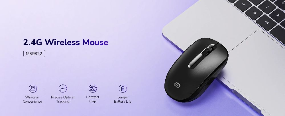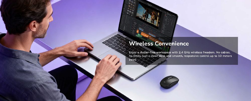A 2.4 GHz wireless mouse with smooth tracking and reliable connection, designed for effortless everyday productivity.