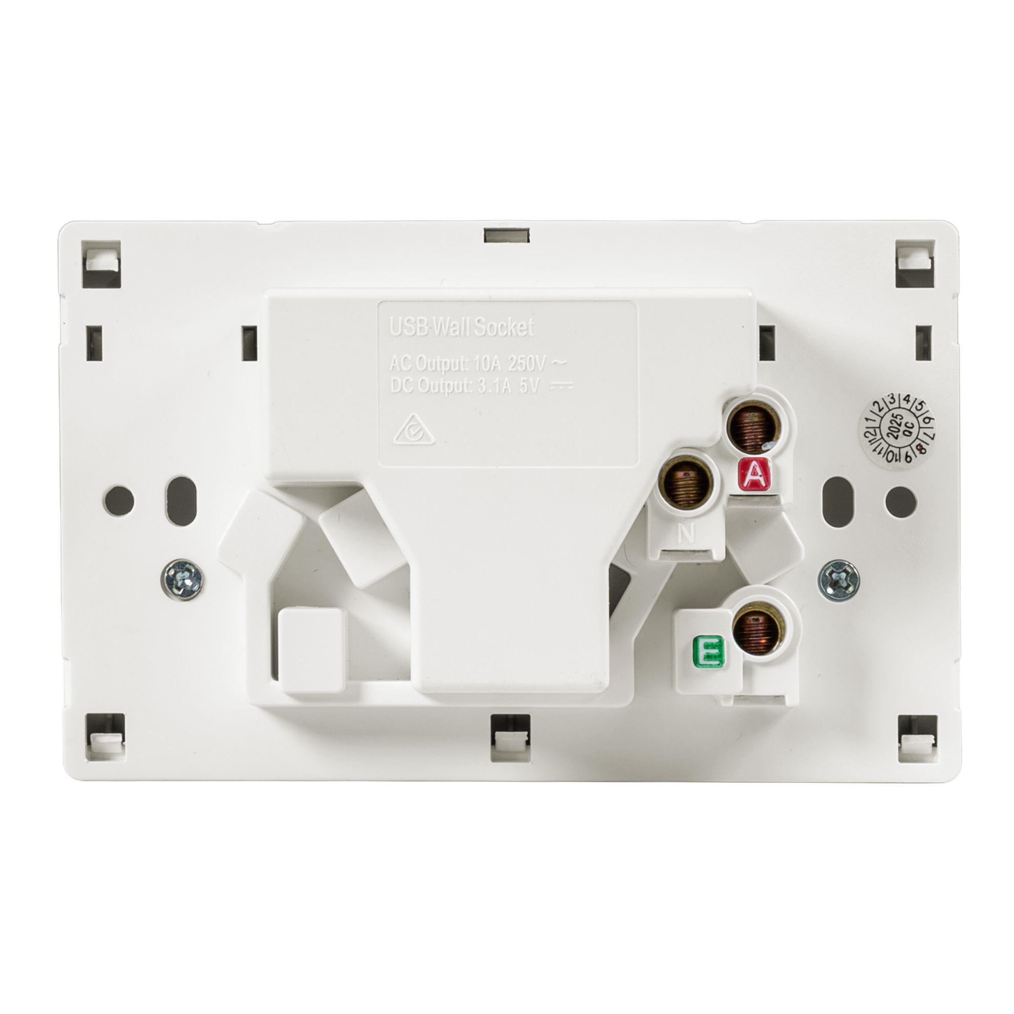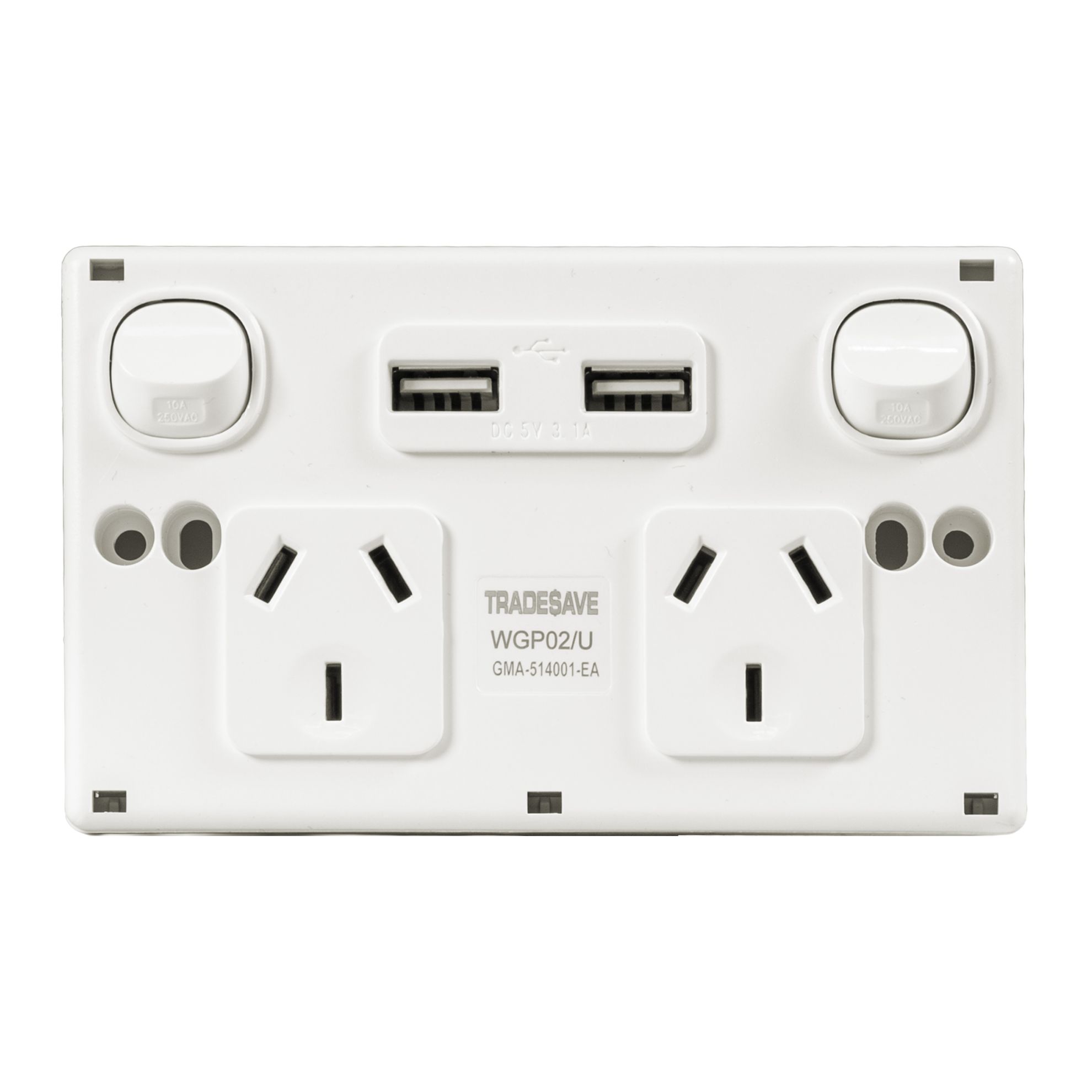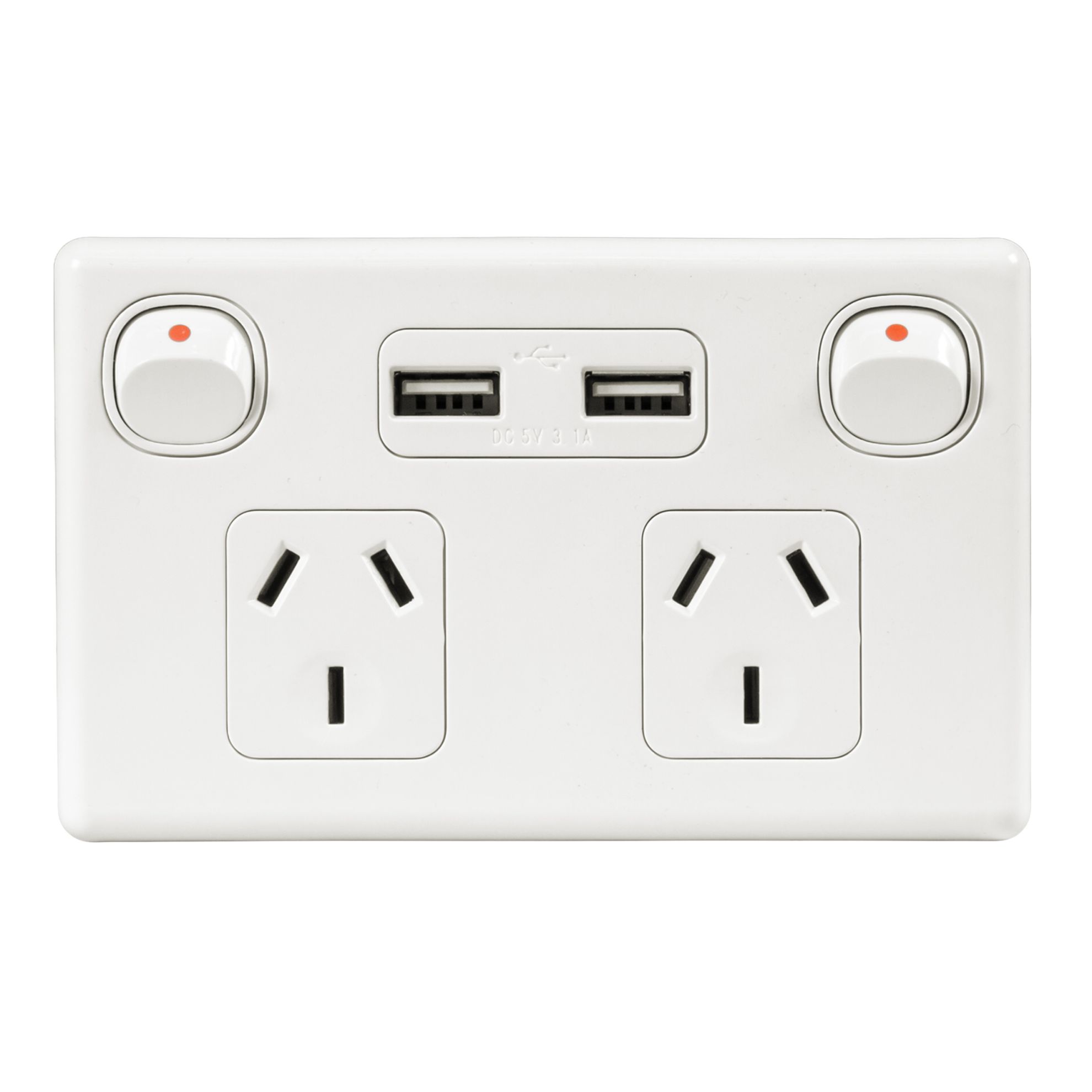 Double 10A Horizontal Power Point 2x USB-A Ports Removable Clip on Cover White