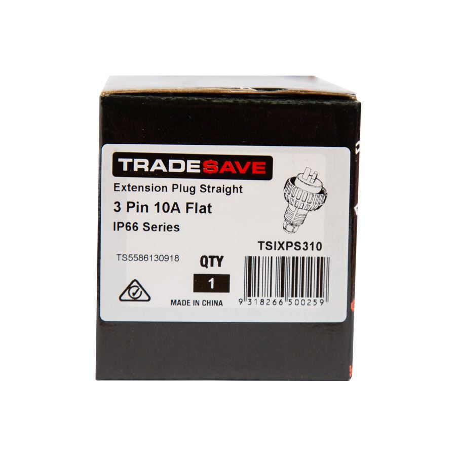 TRADESAVE Extension Plug Straight 3 Pin 10A Flat, IP66, Stainless Steel cover fastening. Heavy Duty Includes Base
