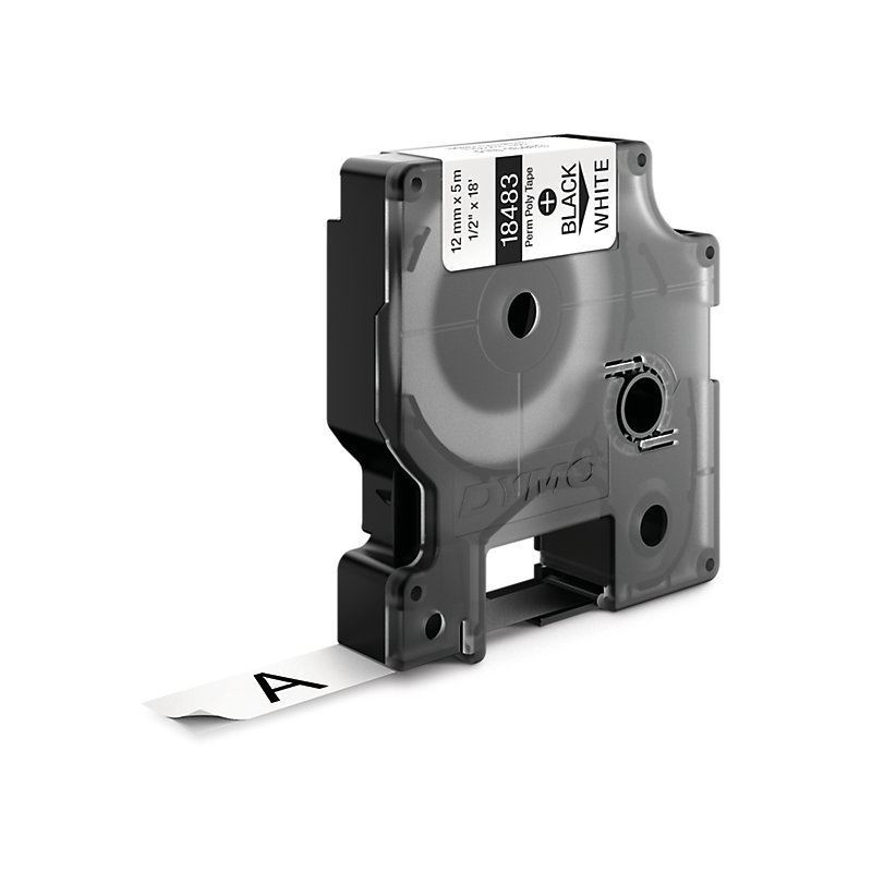 DYMO Genuine Rhino Industrial Labels-Permanent Polyester 12mm, Black on White.For labeling panels, blocks, faceplates, shelves, bins, beams &more. RoHS compliant. Temperature Rating -40C to +150C.