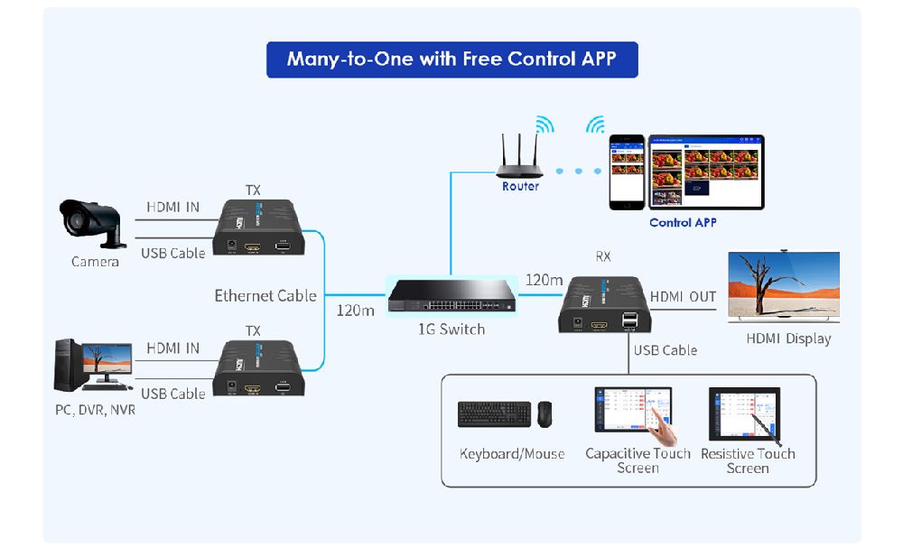 HDMI KVM Extender Over Single Cat5E/6 up to 120M Multipoint/Point to Point.