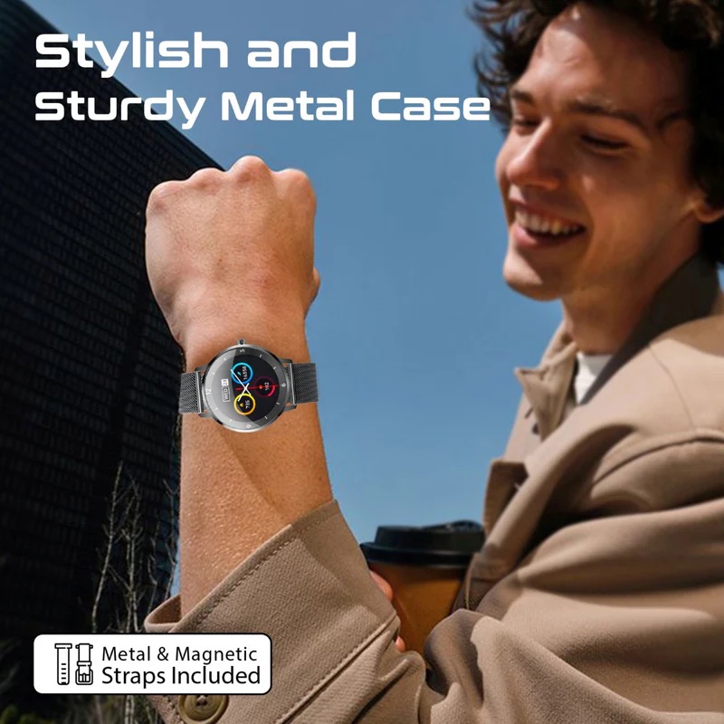 Elevate your style and functionality with xWatch-US13 by Promate, a sleek and ultra-thin smartwatch designed for the modern lifestyle. Stay connected with Bluetooth calling, manage your fitness with over 100 sports modes, and track your active life effortlessly. Its stunning 1.32-inch AMOLED display with 3D spherical curved glass delivers vibrant visuals in 466*466 resolution, blending elegance with cutting-edge clarity. Crafted with a durable metal case and IP68 water resistance, this smartwatch is built to withstand both splashes and sweat. With a 200mAh battery ensuring long-lasting performance, xWatch-US13 is the perfect companion for every moment of your day.