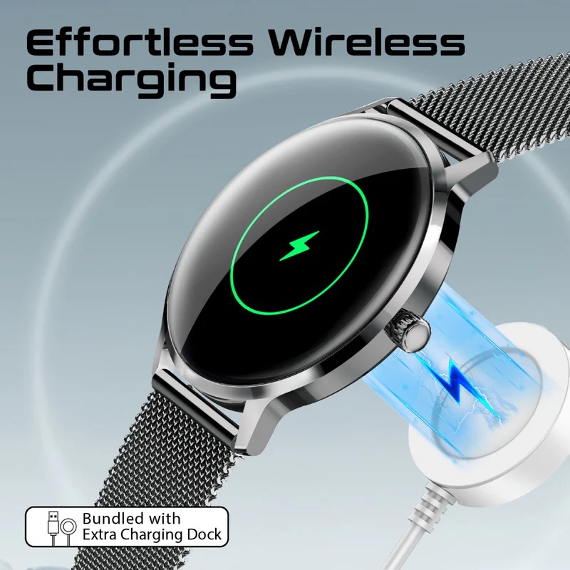 Charge your smartwatch conveniently with its wireless charging capability, ensuring hassle-free power-ups.