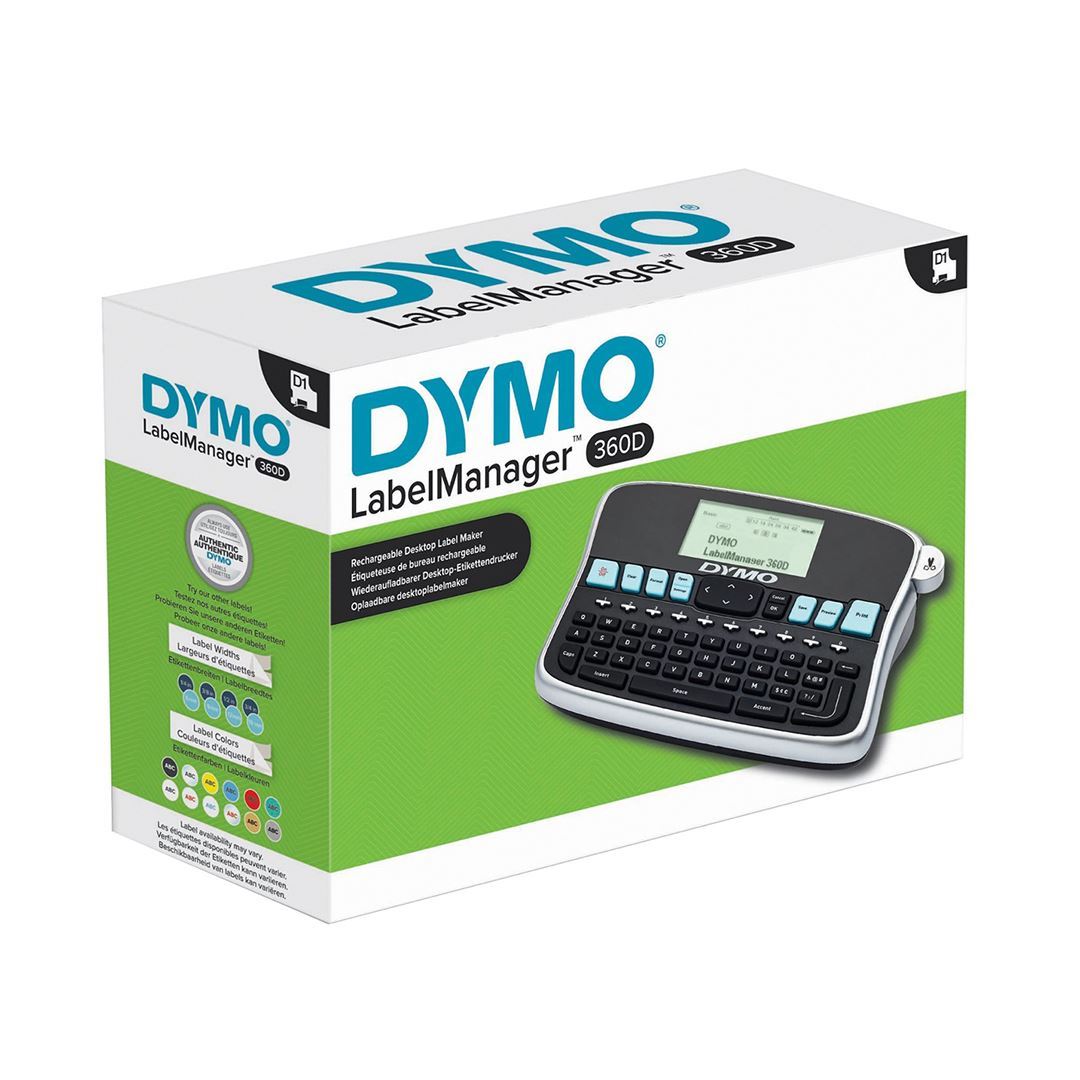 Powered by a rechargeable lithium-ion battery – the same technology used to power cell phones and laptop computers – the LabelManager™ 360D is easy-to-use and eliminates the inconvenience of AA batteries. Print up to nine copies of the same label and prevent repeated work with a nine-label memory and “save text” feature. Enter text quickly and naturally with the familiar computer-style keyboard, and use special function keys for fast access to punctuation marks, currency and other special symbols. Choose from seven font sizes, seven text styles, three font styles and eight boxes plus underline to create custom labels suited for almost any office labelling job.