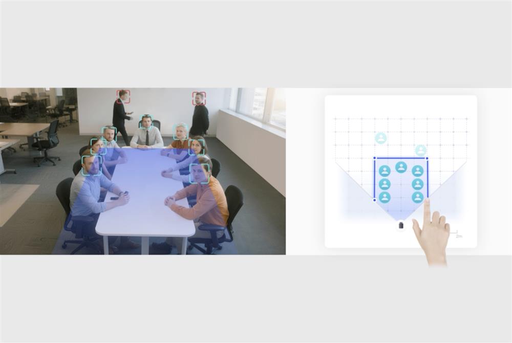Take command of your meeting view with our innovative Video Fence feature. Precisely control the camera's field of view, ensuring AI tracking and focus are only applied within the designated area. Customise presets, auto-framing, speaker tracking, and other AI functions for a truly tailored meeting experience.