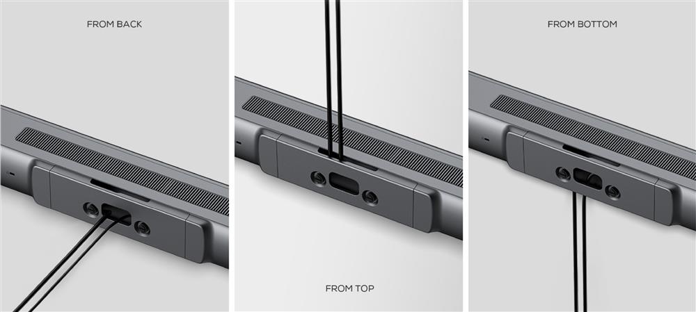 The design includes built-in cable management with exits at the top, bottom, and rear, ensuring a clean and organised setup regardless of mounting position.