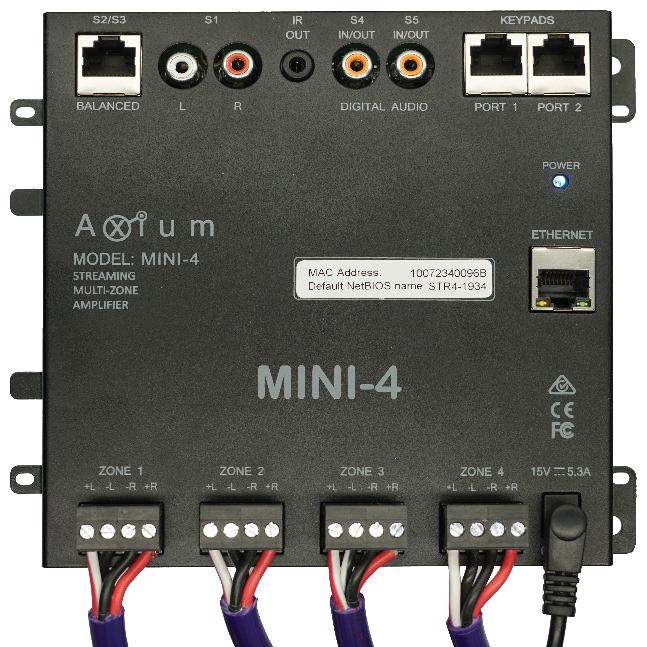- All 4 zones can stream a source from another amplifier or Axium Media Manager (AMM).