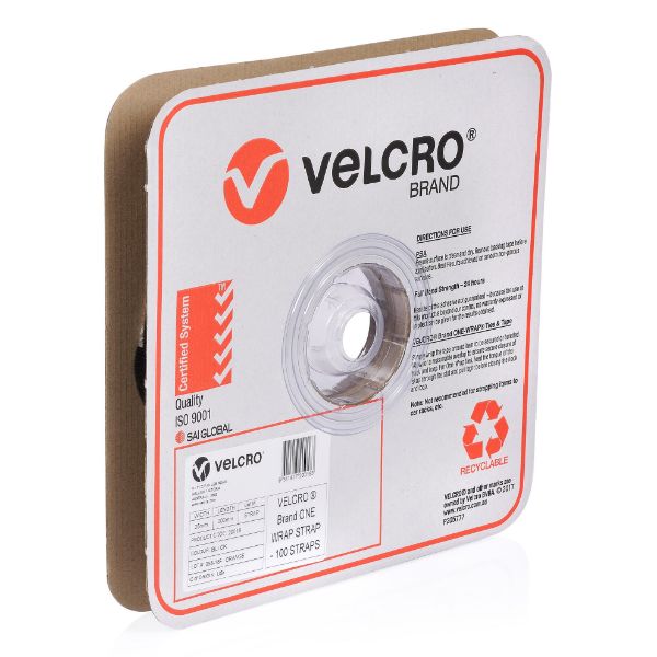 One-Wrap 25mm x 200mm Pre-sized Ties. 100 Ties Roll. Integrated Hook & Loop