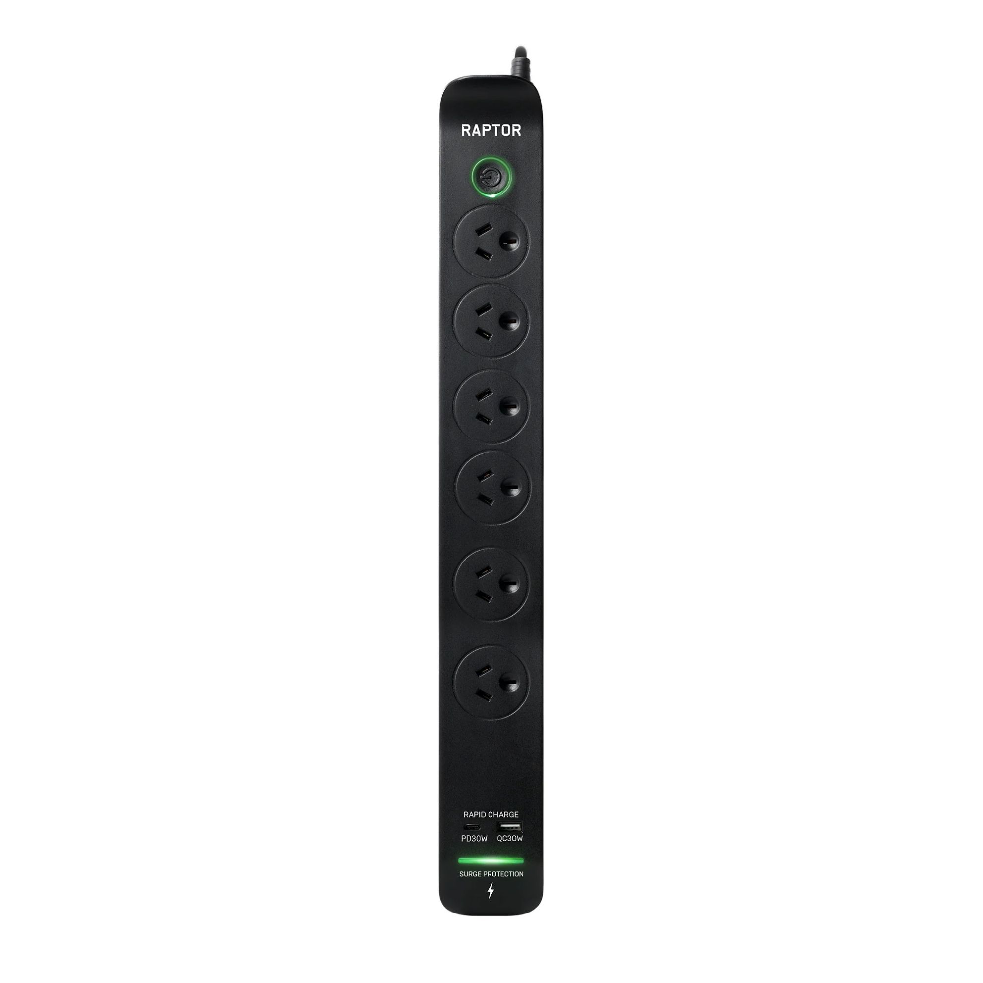 Raptor Surge Protectors have been designed in Australia to meet the high demands of today's electronic devices, including: Gaming, TVs, Audio and Computers. The Patented Surge protection, and Fireproof MOVs built into Raptor will protect your equipment in less than 20 nanoseconds from surges of power entering your home. The High Powered PD 45W USB-C charging port will directly charge your devices, including laptops, Tablets, and Gaming accessories, etc. The stylish design of Raptor makes it ideal to sit on display, powering and protecting your devices, or sit in the background quietly doing its job.