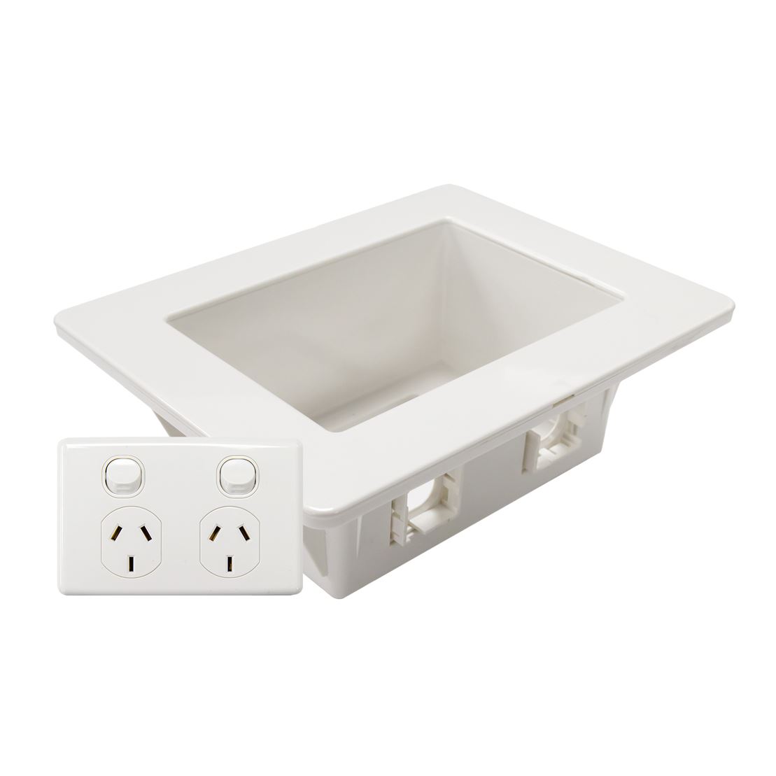 Designed to streamline your outlet installations behind appliances. Provides additional space for AV, Data, and electrical cabling. Installation is simple, and suitable for new builds or renovations.
