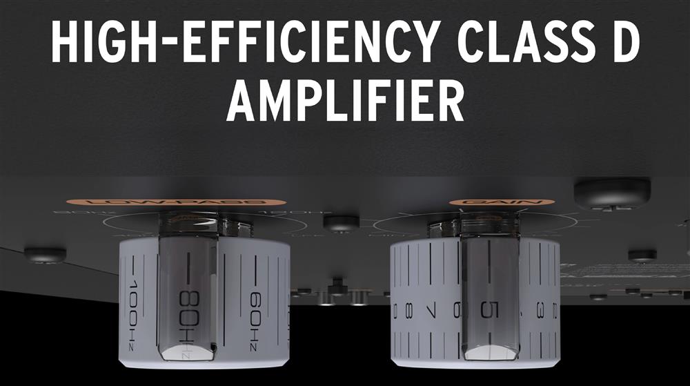 The built-in, high-efficiency amplifier features an analog preamp design, which maintains the original signal path for cleaner, true-to-source reproduction. The Class D output stage ensures maximum efficiency for maximum output, detail, and low-frequency power.