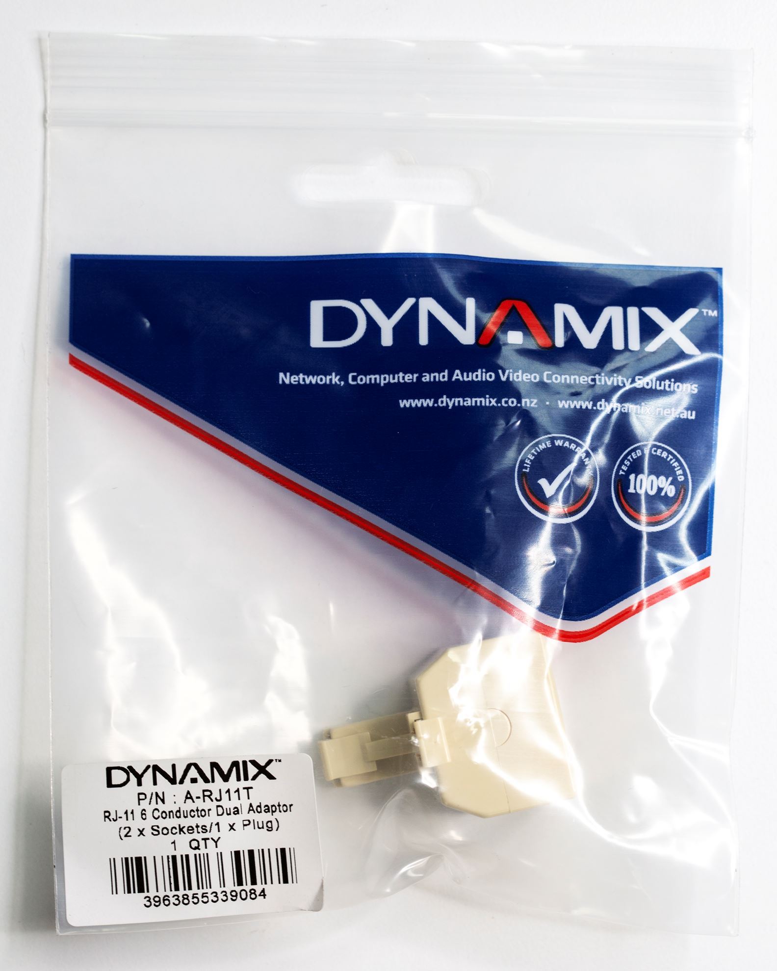 DYNAMIX RJ11 6x Conductor Dual Adaptor (2x Sockets/1x Plug).