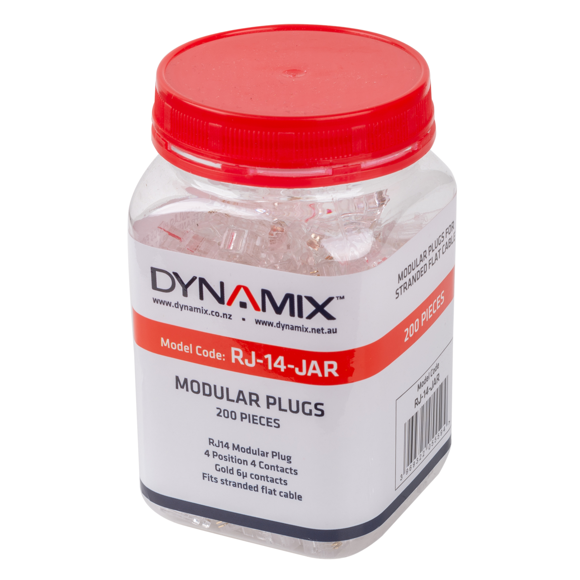 DYNAMIX RJ14 Plug 200pc Jar, 4P4C Modular Plug. 6 micron.