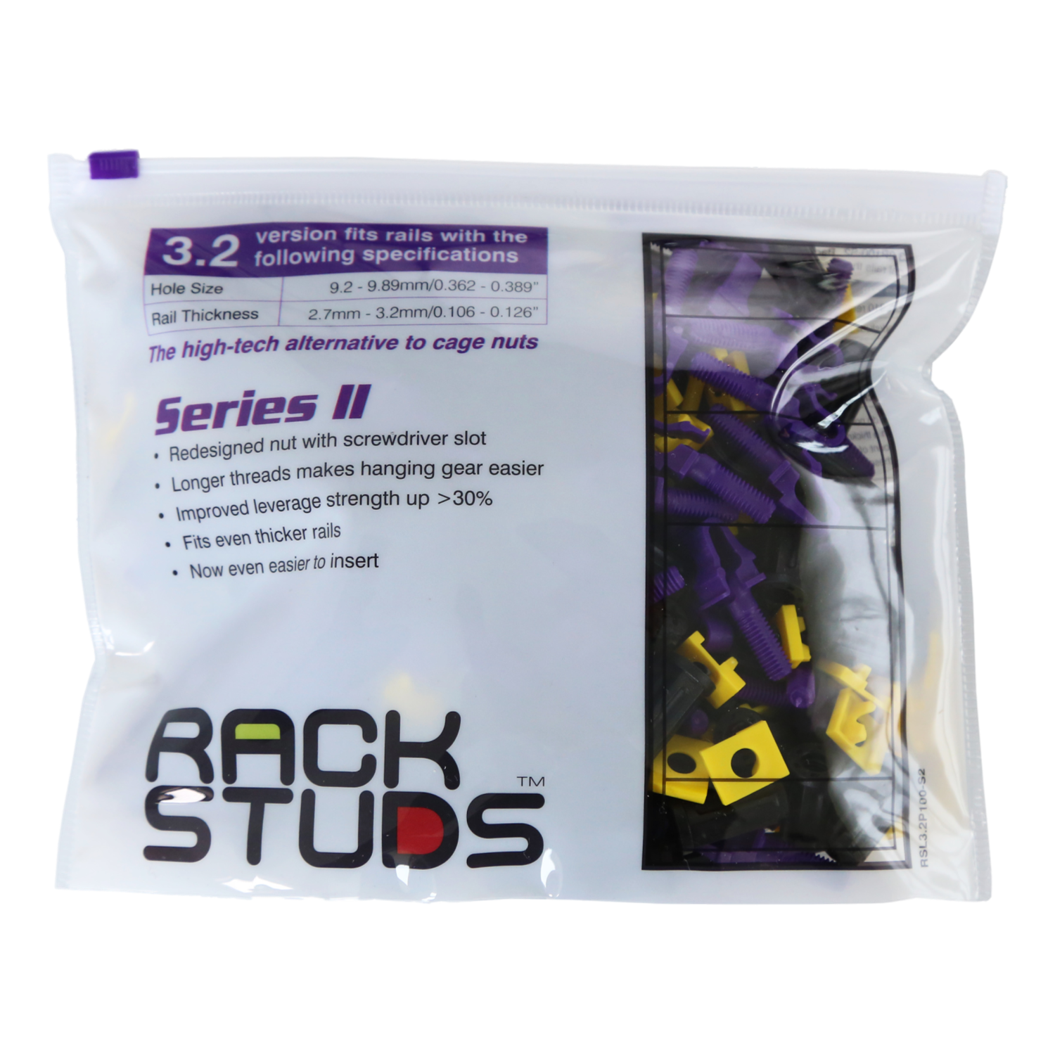 The unique 'Purple' Rackstuds fit thicker vertical rails found in open frames.