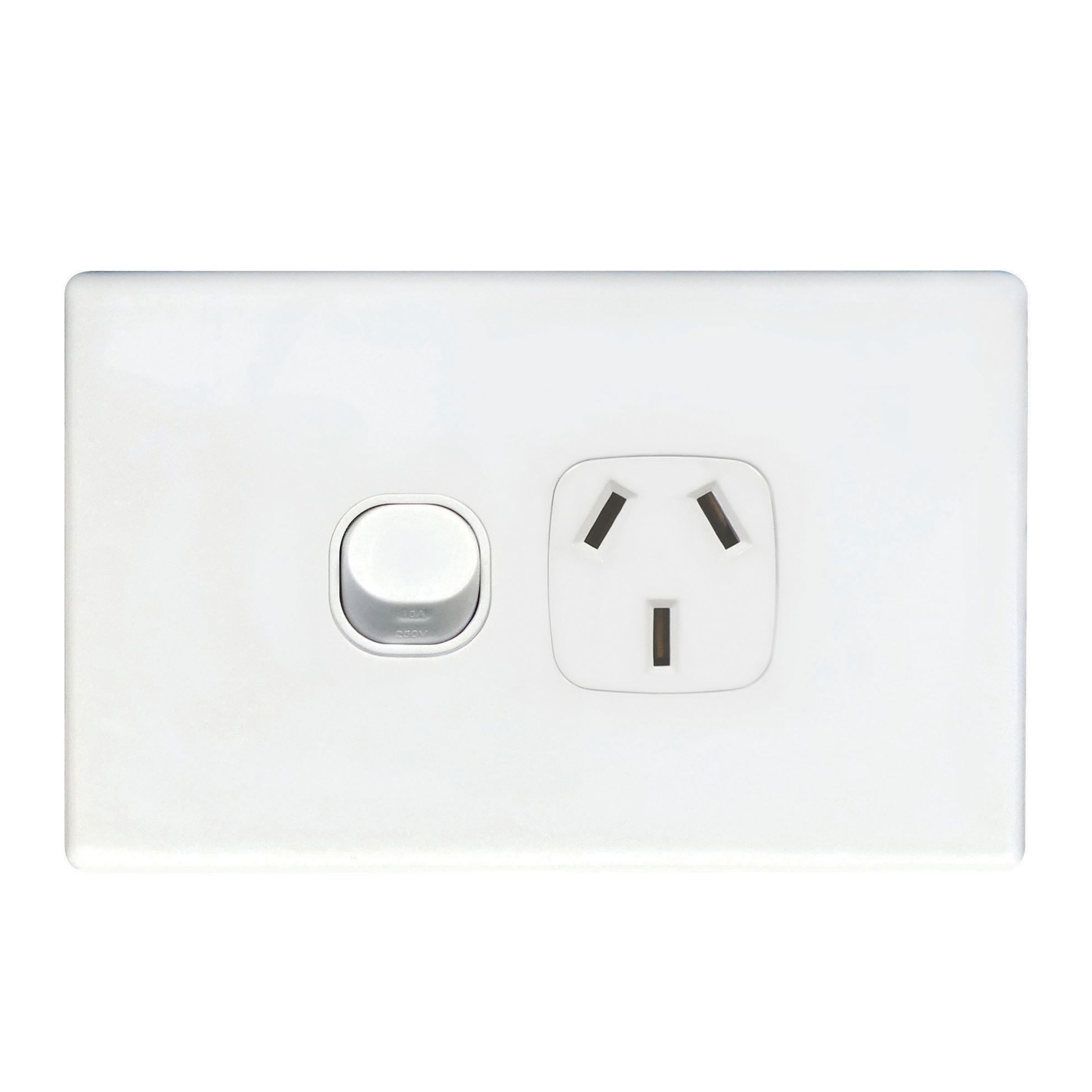 Single 10A Horizontal Power Point Removable Cover Flame Resistant Polycarbonate White