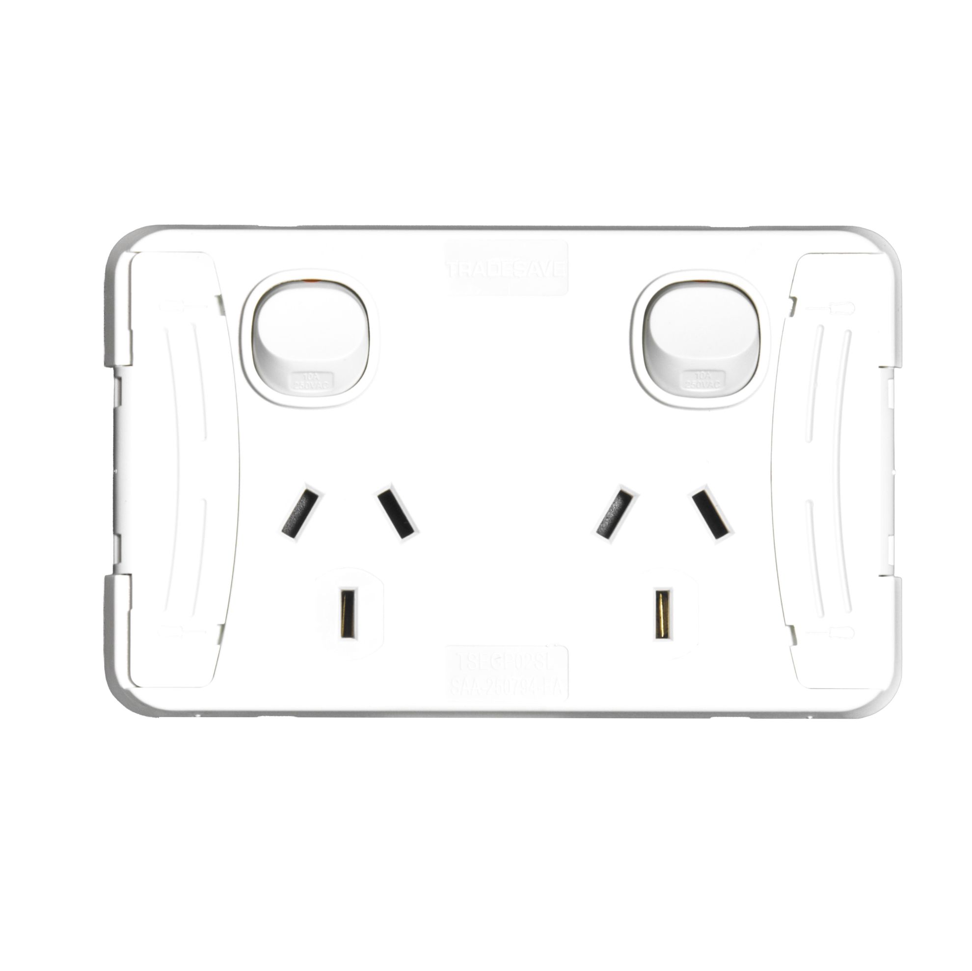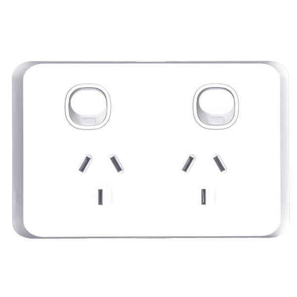 TRADESAVE Sleek Double 10A Horizont Power Point. Removable Cover. Moulded in Flame Resistant Polycarbonate. Fade Resistant. Matte White