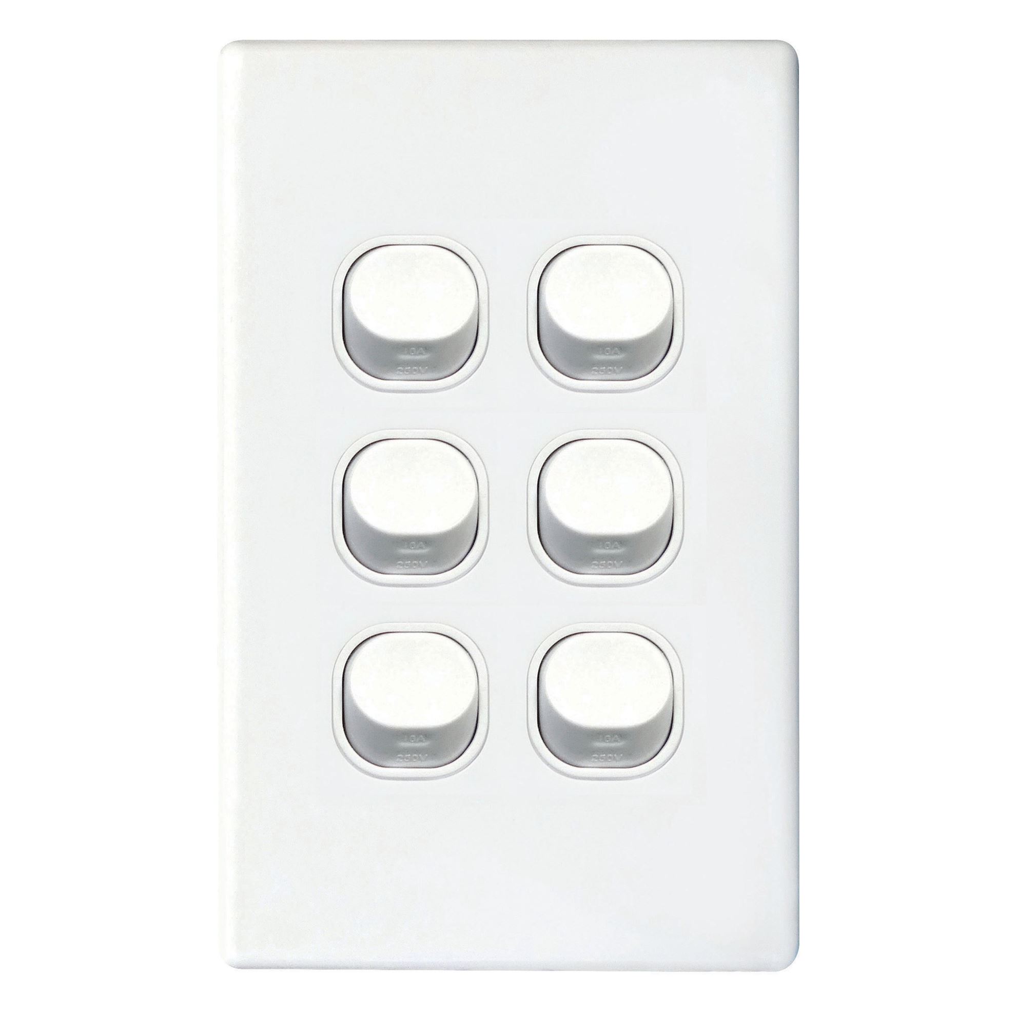 Slim 16A 2-Way Vertical 6 Gang Switch. Moulded in Flame Resistant Polycarbonate. Fade