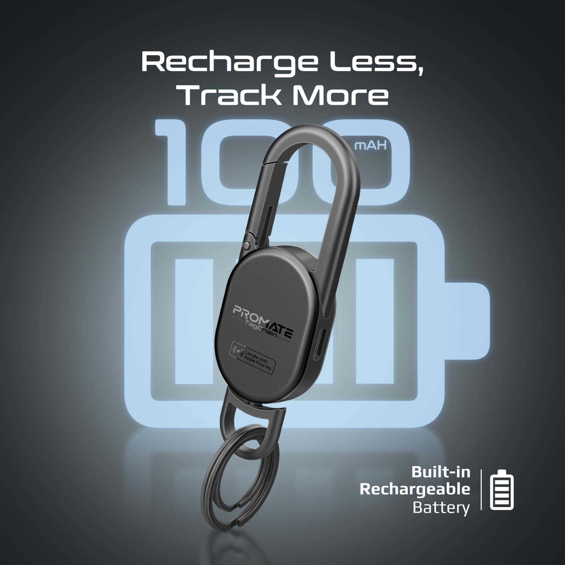 TagChain is the ultimate smart carabiner keychain with Apple Find My integration, letting you instantly track keys, luggage, pet collars, or backpacks from anywhere using your iPhone. Equipped with Bluetooth 5.2, a 90dB speaker, and precision tracking, it ensures nothing stays lost for long. Its rugged yet compact design features a durable carabiner and sleek keyring, crafted from premium aluminium, ABS, and PC. It comes with IP67 water resistance and a 100mAh rechargeable battery that delivers 3 months of standby on a single 1-hour charge. TagChain keeps you connected, protected, and in control.