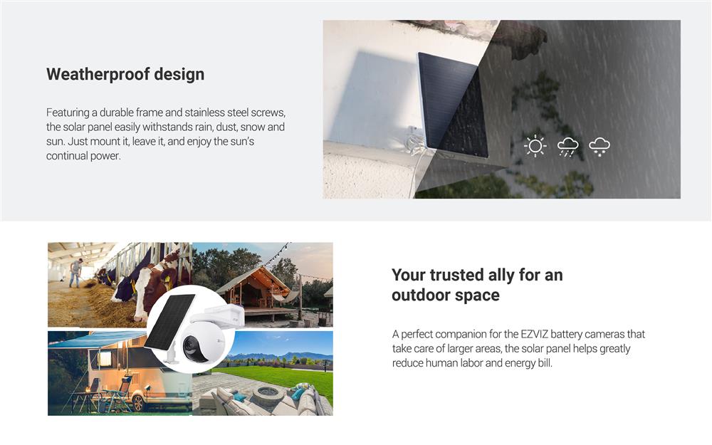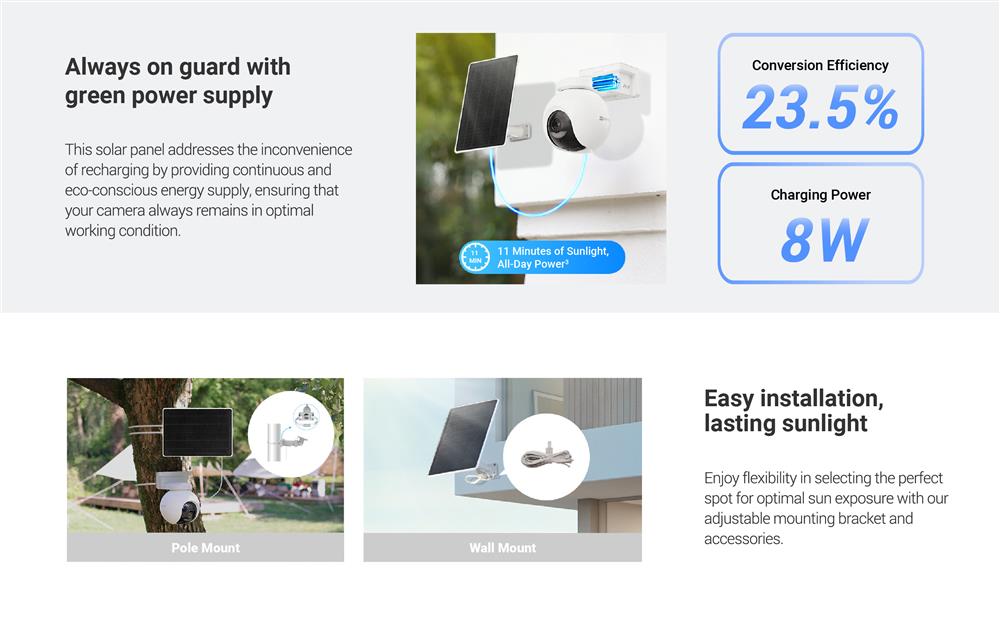 Solar Charging USB-C 8W Panel for Battery-Operated Cameras Weather Proof IP65 Delivers up