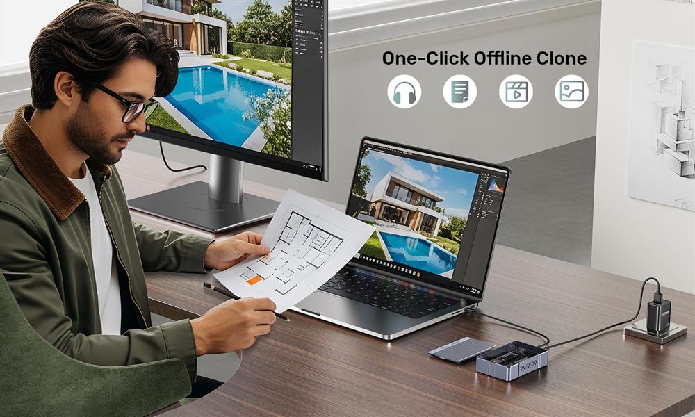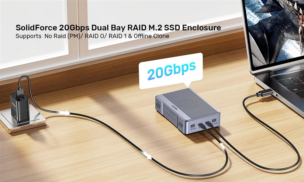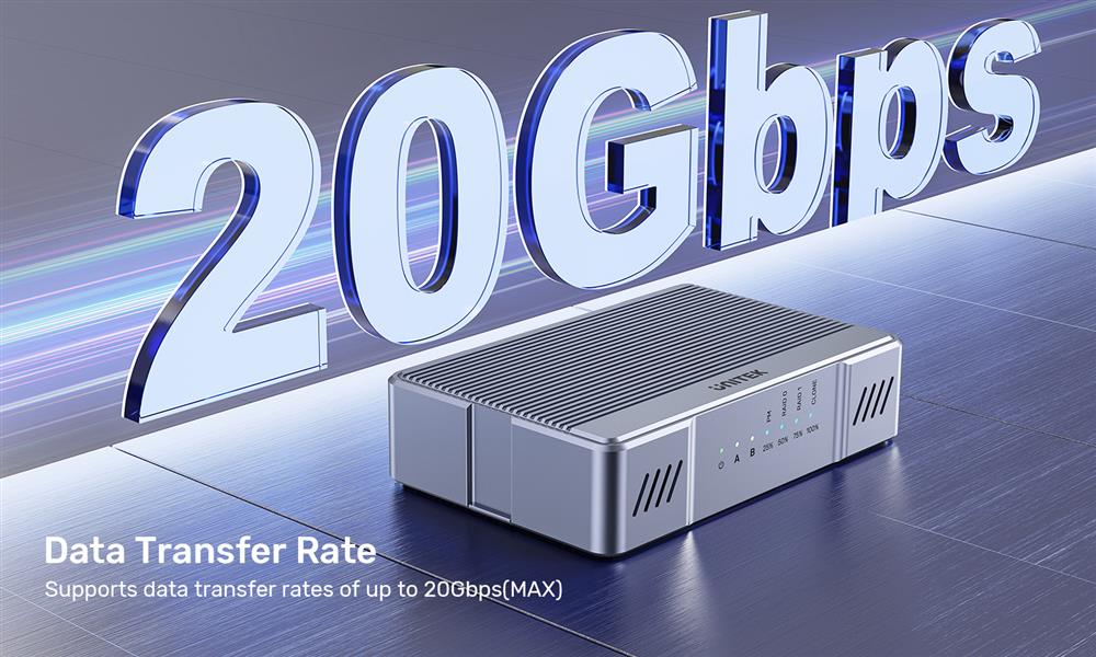 UNITEK SolidForce 20Gbps Dual Bay RAID M.2 SSD Enclosure is not only a dual M.2 SSD enclosure but also supports RAID features with simple mode settings. One-button control enables seamless SSD duplication without a PC or laptop connection. It is an ideal choice for personal storage at home and in the office.