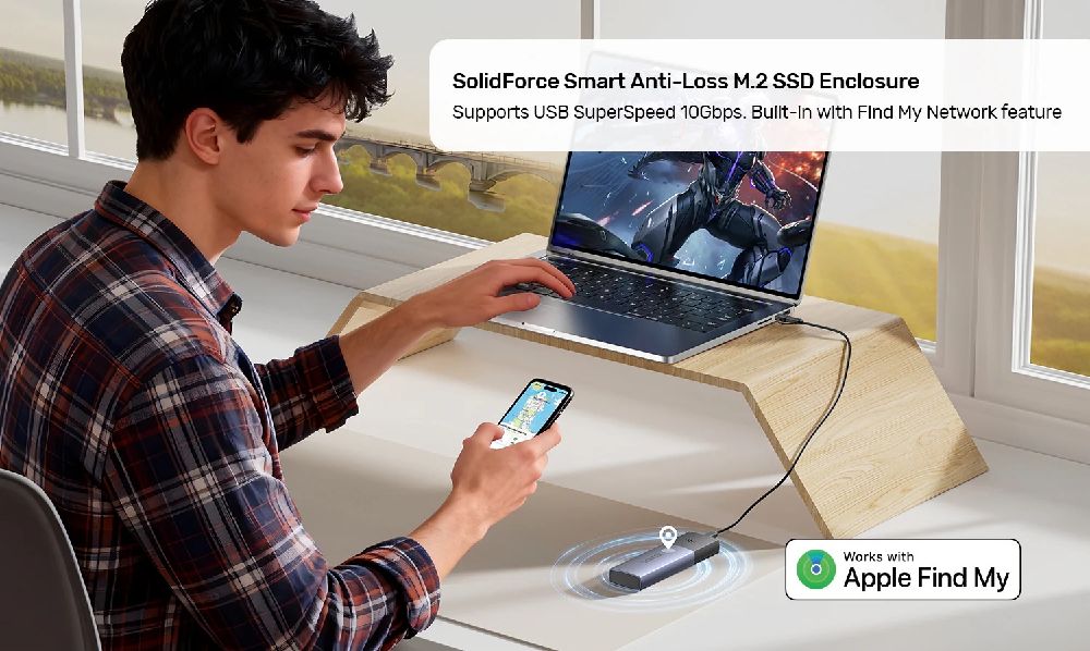 SolidForce Smart Anti-Loss M.2 SSD Enclosure. USB SuperSpeed 10Gbps. Built-in Find My Network Feature.