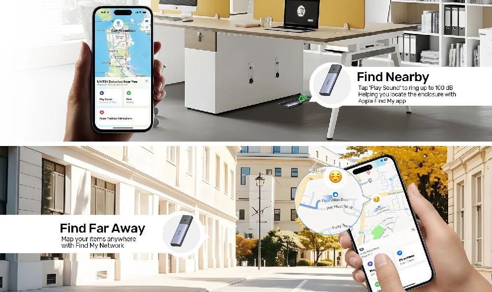 Seamlessly track your SSD enclosure using Apple’s official Find My app for a premium user experience. This feature prevents accidental loss when the SSD enclosure is left behind after use in different locations. Locate your SSD enclosure quickly with the built-in sound alarm. Stay Connected, Stay Secure– Your Data Deserves the Best Protection!