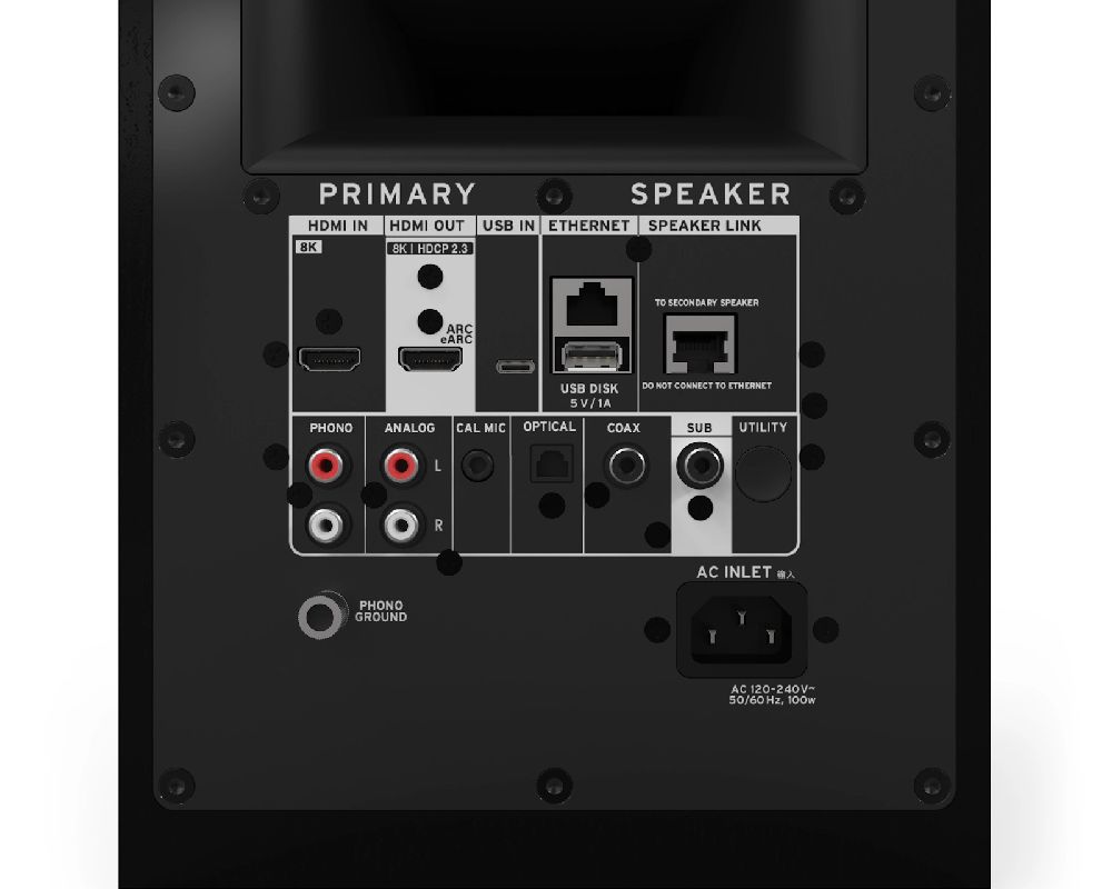 By including an HDMI 2.1 In/Out solution, the Sevens II powered speakers deliver a simpler setup, better sound, and full next-gen compatibility by using a single cable to connect to your TV via eARC while passing through the highest-quality video and audio from connected devices. HDMI 2.1 supports uncompressed, high-resolution formats like Dolby Atmos, improves lip-sync accuracy, enables TV remote volume control, and allows gamers to enjoy 4K/120, VRR, ALLM, and HDR without sacrificing performance. The result is a future-proof speaker system that acts as the hub of your entertainment setup - eliminating extra boxes and cables while delivering cinema-quality sound and seamless gaming and TV integration.