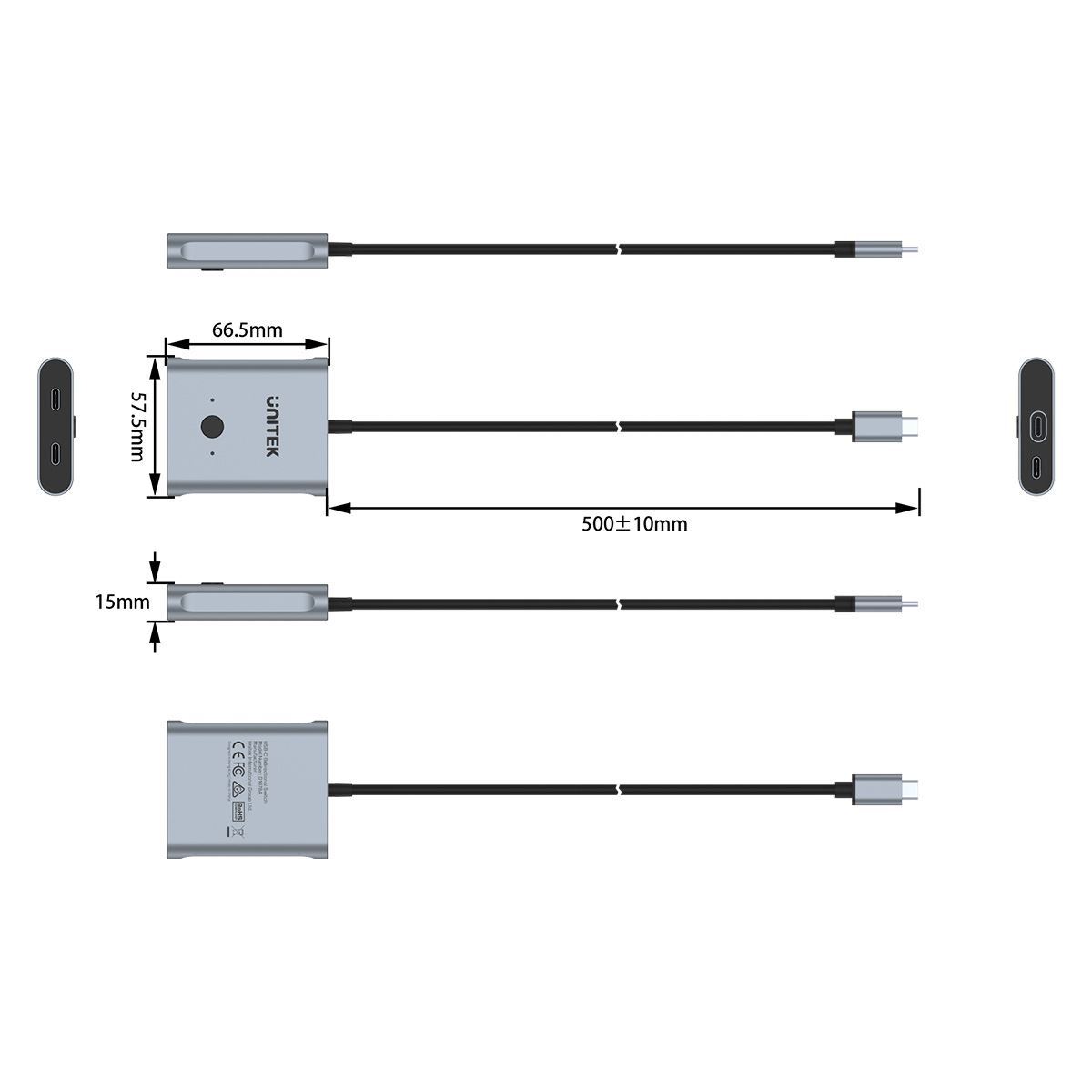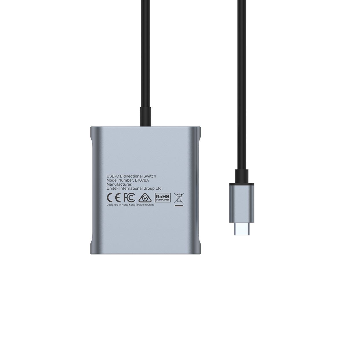 This bi-directional switch offers 2 USB-C inputs for your devices to connect with 1 USB-C Display, also works the other way around as a splitter.